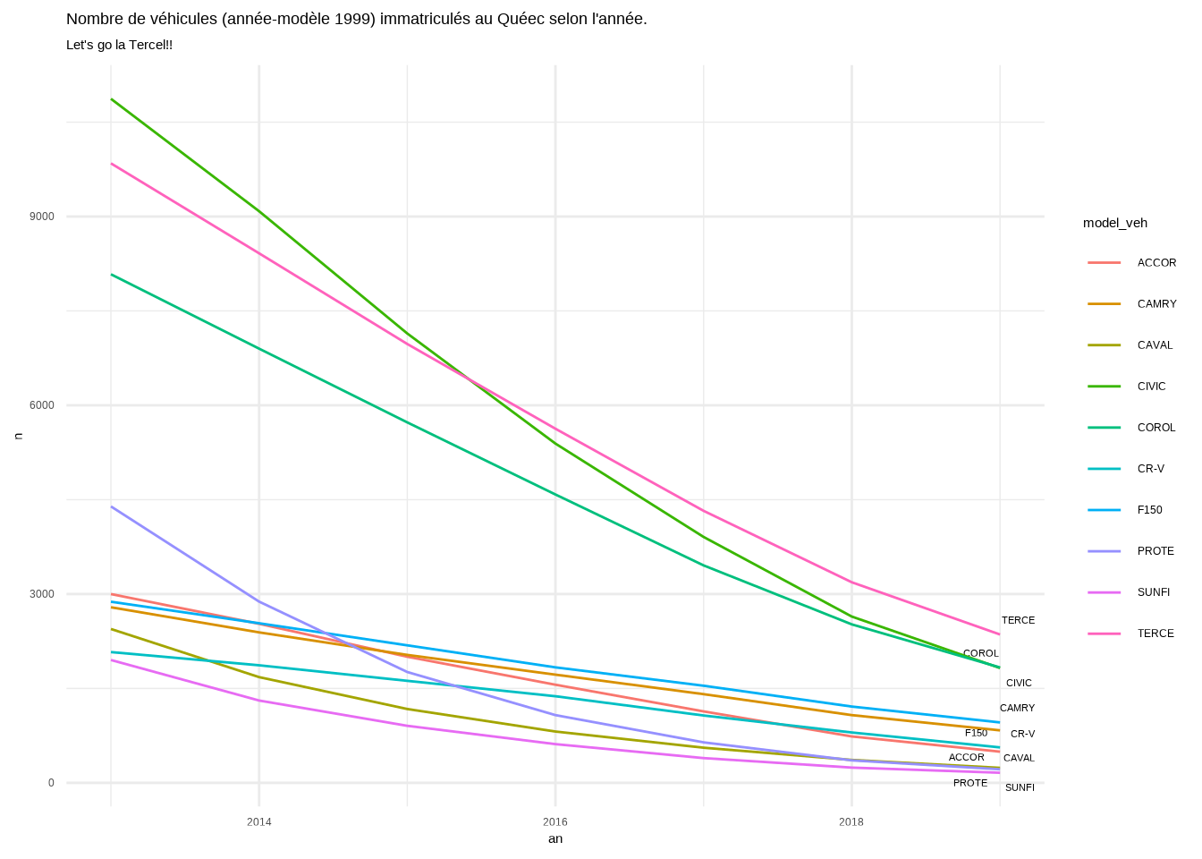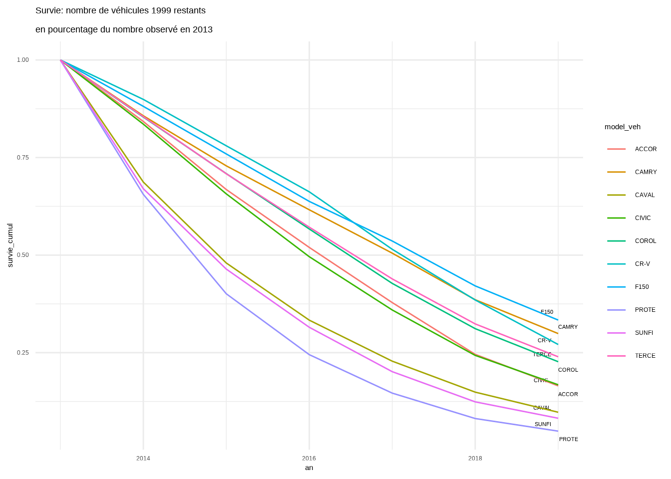 Le but c’est de voir quelle marque a le plus de véhicules sur la route après quelques années. Sans surprise les toyota et honda de ce monde dominent largement. Deux curiosités: les F150 disparaissent (exportés?) ainsi que les volkswagen (dieselgate?)
