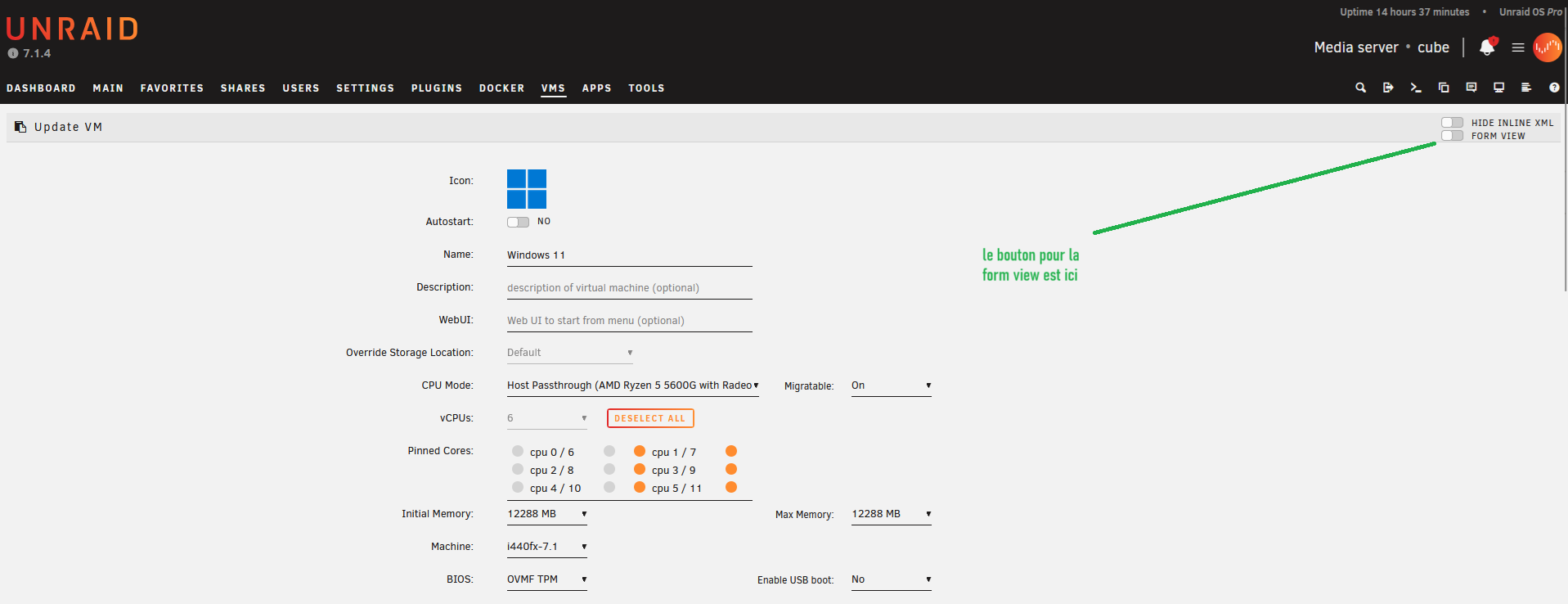 J’ai essayé de suivre ce guide Creating a Windows 11 Gaming VM in Unraid with Nvidia GPU Passthrough sur thehomelabber.com par Blag.