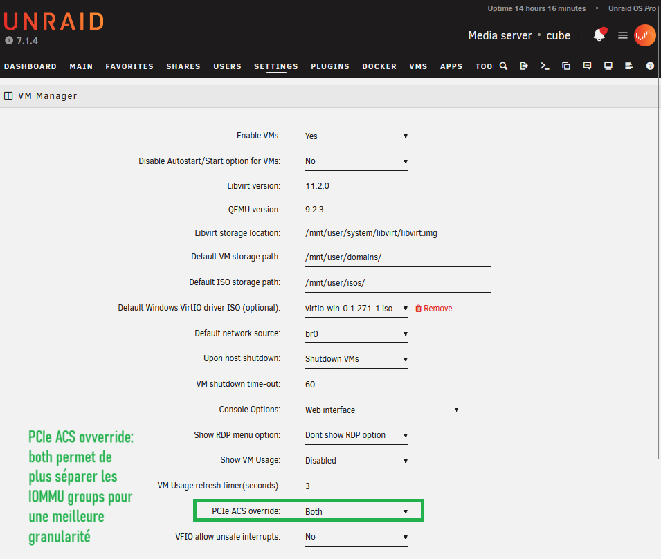 j’ai utilisé la 2e method (mettre pcie acs override = both dans settings - vm manager)