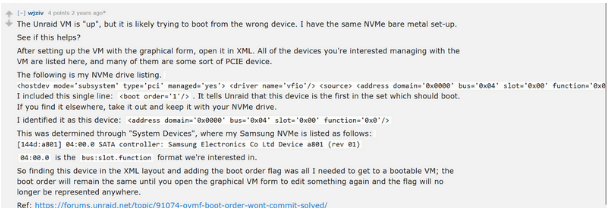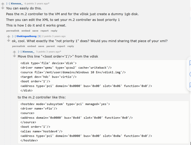 https://www.reddit.com/r/unRAID/comments/o171n3/booting_a_vm_from_a_m2_ssd/