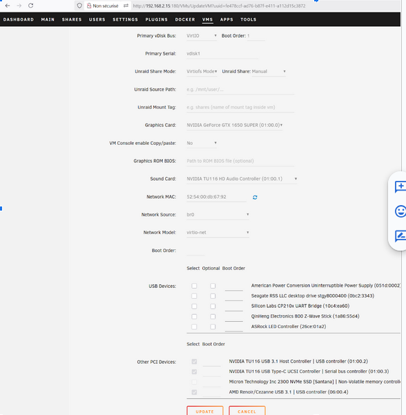 Déjà, il faut être capable de créer une VM avec un passthrough GPU et USB comme décrit dans mon autre blog post. Par contre, je ne vais pas passer le disque dur NVME, la VM batocera va se contenter d’un disque dur virtuel sur mon cache ssd (dans le share ‘domains’).